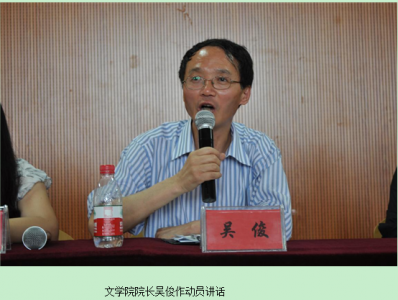 文学院院长吴俊在讲话中强调文学院“三尺讲台展风采,星光闪耀为明天”开展此次09级学生实习培训启动仪式暨说课大赛很有必要,希望大家认真对待,培养吃苦精神和自信心。