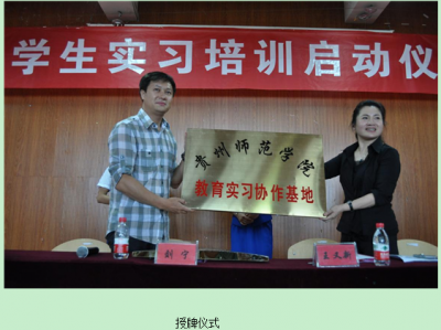 文学院党总支副书记王又新与田田教育集团的刘总签订了将田田教育集团作为文学院教育实习基地的协议并举行了授牌仪式。