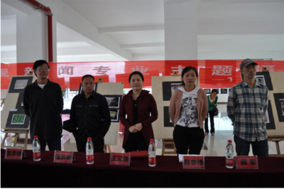 6月4号上午10点,文学院第二届广播电视新闻专业开幕式在逸夫楼架空层如期举行。文学院党总支副书记王又新,艺术学院美术系主任伍鹏举,基建处富源峰老师,文学院团总支书记陈亦桥,11级广电班辅导员颜军老师、涂雨秋老师、友好学生社团代表共同推杆启动。涂雨秋老师是本次摄影展的主要负责人,同时也是本次开幕式的主持人。