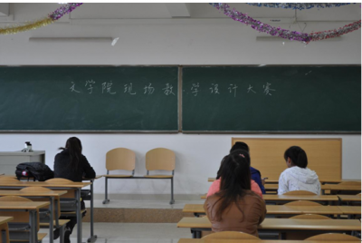 6月4日下午2点,文学院教师现场教学技能设计大赛在文韬院09级各个教室举行,参赛者是09级全体学生,大赛以考试的方式进行比赛,时间限制为2个小时,每个赛场一个监考教师。