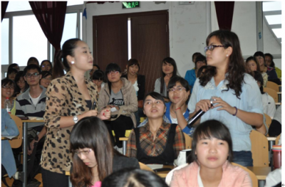 讲座主要分为两部分举行,周波老师先以“冥想”和“小雨,大雨,狂风暴雨”两个游戏带动学生气氛,让整个讲座在轻松活跃的氛围中进行。接着她向同学们阐述了什么是爱情以及我们对待爱情应有的态度。 “恋爱不是一辈子的承诺,分手也不等于背叛。”周波老师说。