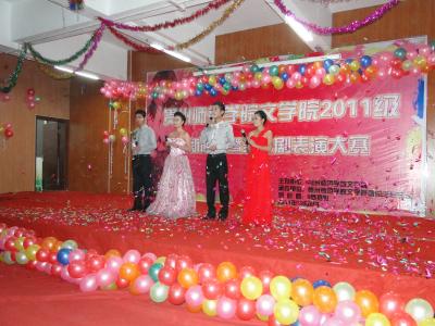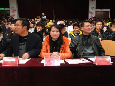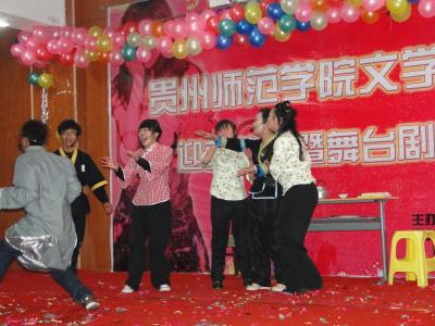 文学院主办,文学院团总支学生会承办的2011级迎新晚会暨舞台剧表演大赛在文韬院学术报告厅举行。校团委副书记韩宝银老师,文学院副院长韦丹老师,学工部副部长薛璞老师及文学院各班辅导员老师参加了此次活动并担任大赛评委,另外,还有八位来自泰国的交换生以及各个兄弟学院的学生会负责人也参加了此次活动。