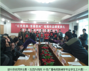 活动开始,由贵州师范大学校党委副书记邹克杨致欢迎词,依照会议议程,出席嘉宾纷纷发表讲话,其中最引人关注的当属来自中国传媒大学戏剧艺术学院的刘烨原、邢北冽老师的发言,他们给我们带来了一些新的资讯,新的理念。在他们的讲话中透显出对于当今主流电视媒体新的定位,新的视野,把我们贵州电视媒体放在全国的平面上进行对比,指出我们在其中的优势和劣势,同时对于我们对电视创作的热情和态度给予了高度的肯定。会议结束后,由来自中国传媒大学的老师及各级领导给获奖的学生颁发证书。