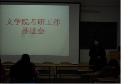 2012年3月6日下午4点,文学院在明德楼518教室举行了2009级学生考研工作推进会,文学院院长吴俊、副院长韦丹、院长助理刘海涛、辅导员杨兴萍老师以及2009级五个班一百余名准备考研的同学参加了此次会议。