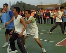在一片片喧闹声中,篮球在两队球员手中不断跳跃,当球进入10(2)班的领地时,11广电班的同学成功的将10(2) 未进的球断下,然后迅速反攻。这时,在10(2)班拉拉队服务点,有一个男生在大声指挥赛场上的本班球员,“没关系,慢慢来,防好!防好!”一会儿,10(2)班球员得到球,他的声音再次响起,“快!快!传!传!这边!”他在场地边缘跟着本班球员来回跑,方便指挥,减少失误。这是在以前的比赛中很少见一幕。打过球的人们都知道,无论在场外有多么周密的计划,一旦上场,情况就不像想象的那样了,而是有很多的不确定因素。在比赛允许的情况下,这会大大增加进球的概率,出现更好的成绩。