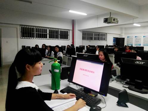 为提高全体学生的实验室安全责任意识, 保障学校公共财产和师生人身安全。文学院的老师梁娥和潘源分别于2017年9月6日下午和9月7日上午,对2016、2015级广播电视学专业同学进行相关培训,主要内容主要包括:仪器设备借用流程及卫生管理、实验室用电安全、如何应对实验室突发安全事故、灭火器的使用方法等。