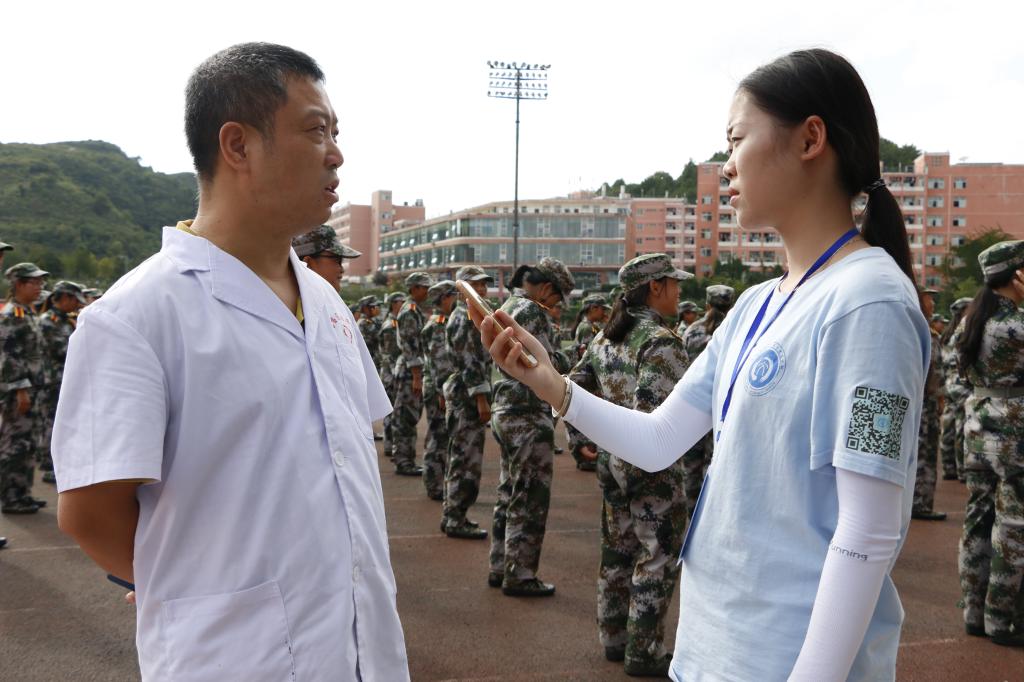 在军训的过程中,由于天气原因造成同学生出现中暑、呕吐、轻度昏迷等症状,他们立即根据具体情况迅速地做出了具体的救助措施。乌当区人民医院主治医师赵志文对于军训期间学生的饮食提出了建议:“首先要饥饱适中,不论是偏过于哪一方都容易造成身体不适;其次要多补充水,大量的运动过后会造成身体水分流失;最后需要提醒同学们,在军训前应做一些准备工作,否则骤然的激烈运动会让身体难以适应。”虽是普通不过的言语,平凡不过的建议,饱含的是却是我校后勤保障的工作人员们对学生最诚挚的关怀。