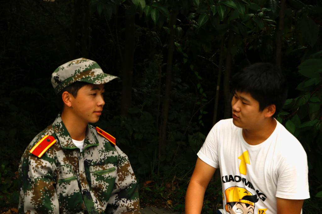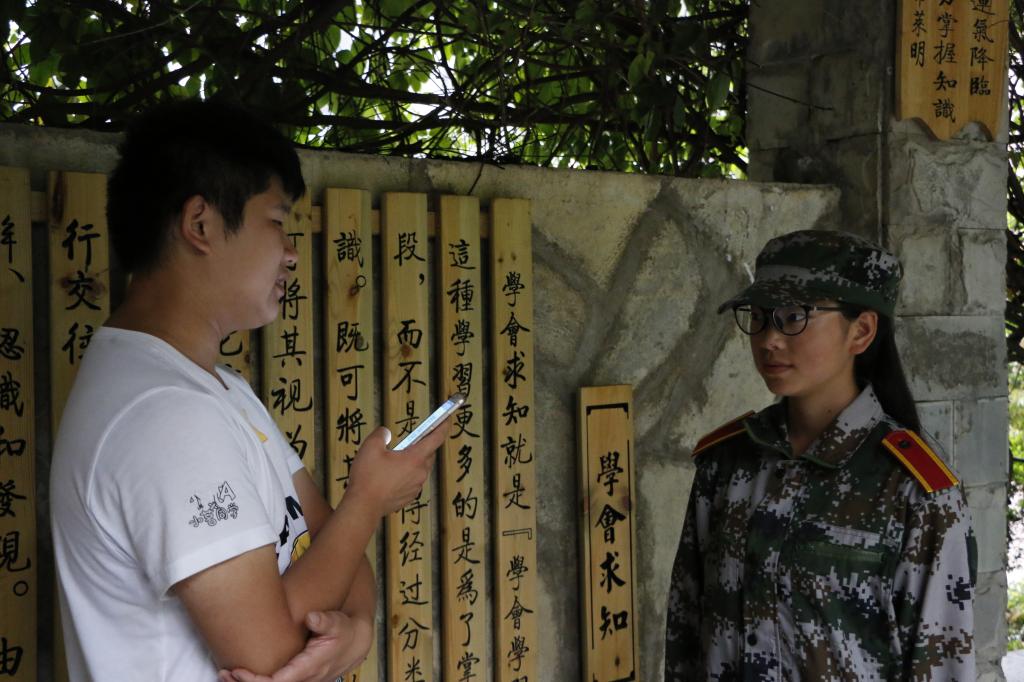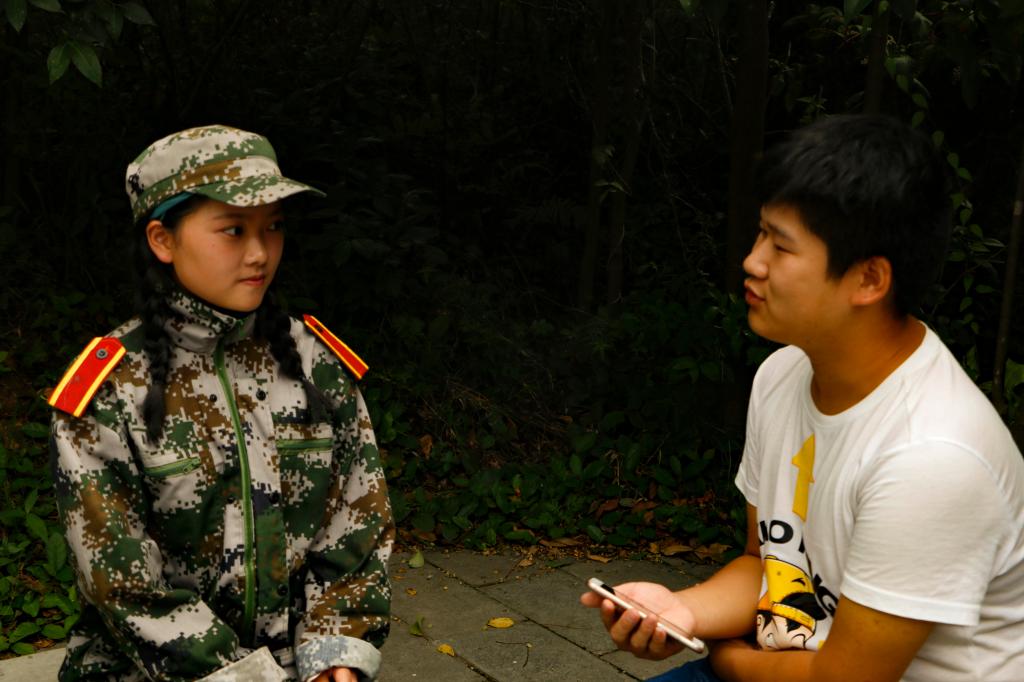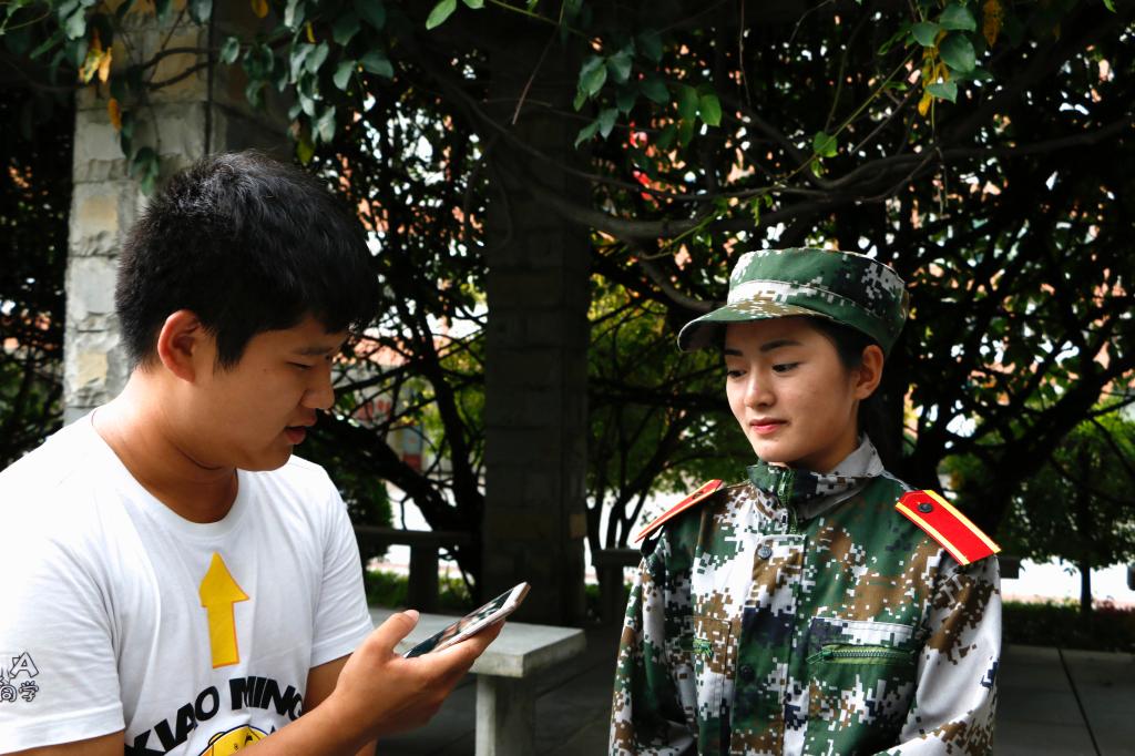 军训中有一个最重要的角色——教官。汇演一结束,各连的教官都纷纷离开,这也是同学们最伤心也是最舍不得的一刻。“我们的教官对我们特别好,虽然第一天刚军训的时候他对我们很严厉,可接触久了,就觉得他特别好。在休息的时候教官会和我们聊天,聊他的参军故事,给我们讲很多道理,我们很聊得来。而且他很关心我们,他会帮我们整理衣领,给我们纠正帽子,所以我就觉得他特别好。”经常有人说,刚军训时你一定会惧怕你的教官,可是军训结束后,你却又一定会舍不得你的教官。没错,军训就是这么的神奇。提起教官,朱朵眼神有些闪烁。“今天他们走了,我的室友在叫她们的教官,我也想叫,可是我又觉得女孩子要矜持,我的心里好想哭。以前想他们快走,我就不用军训了,但我现在才发现我错了,我真的很舍不得我的教官,如果有机会能在见到他,我会和他说:你真好,我们很想你。”