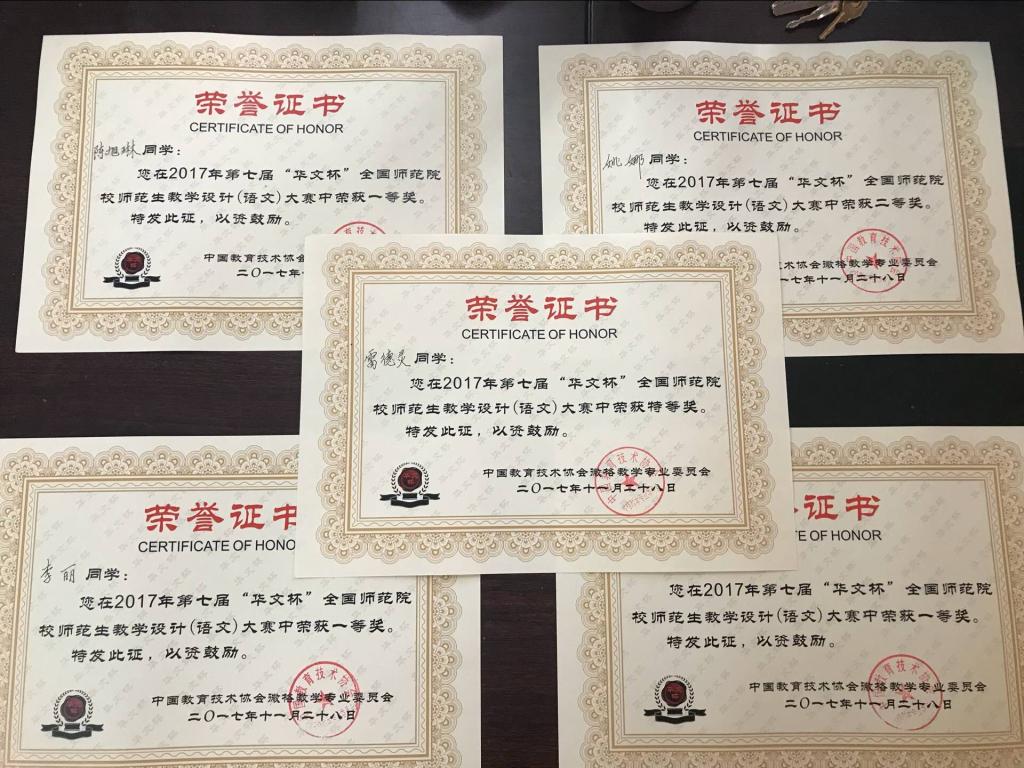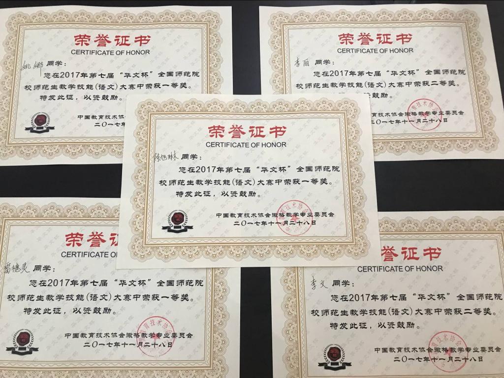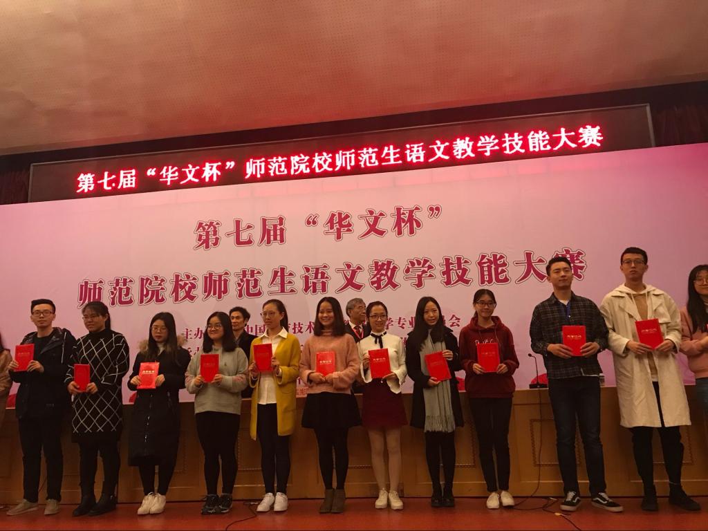技能娴熟独步赛场,精益求精风采尽展。我校文学院学生雷德灵、陈旭琳、李文、李丽、姚娜等五名同学在第七届“华文杯”全国师范院校师范生教学技能大赛中不畏强敌、沉着应战,以清晰的教学思路、精彩的教学内容和精湛的授课技巧获得评委肯定,所有参赛同学全部获奖,斩获教学设计比赛特等奖一项,一等奖三项;教学技能比赛一等奖三项,二等奖两项。