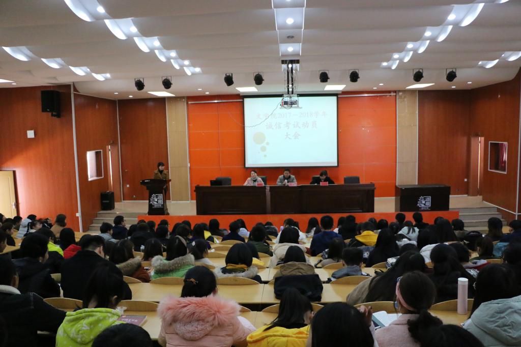 在文韬苑明辨楼三楼学术讲堂举行2017-2018诚信考试动员大会。院党委副书记陈亦桥、副院长刘海涛、专职辅导员蹇登绯、院团委副书记张宇环出席了本次大会,动漫下载