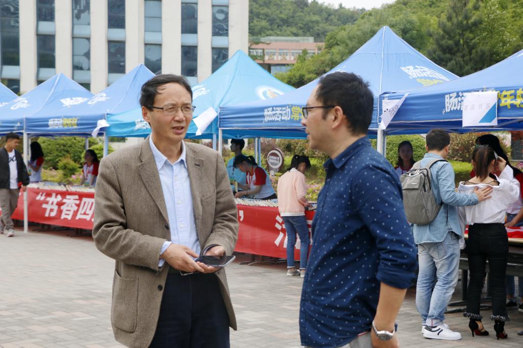 校党委书记石培新莅临活动现场,对活动的开展情况进行了相关指导并提出了建议,他说:“活动开始前应对同学们的阅读书目做调查,使读书活动的意义得到充分的体现。”院长吴俊、党委副书记陈亦桥也参与到活动当中。