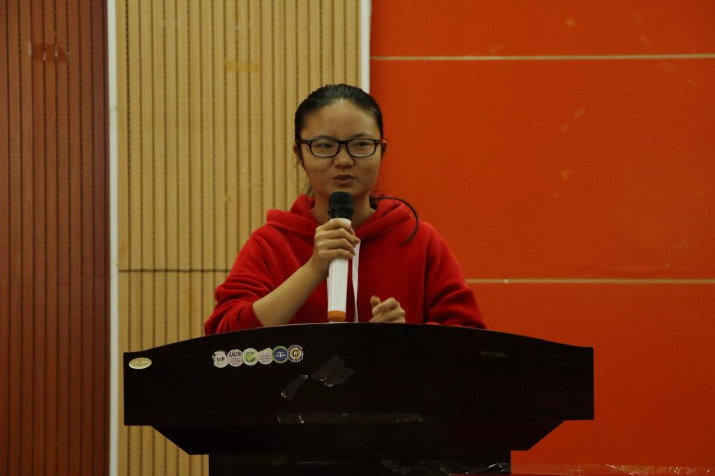 李慧丽介绍大会流程后,第十四届学生会主席杨氽、十四届团委副书记张宇环依次上台发言。杨氽对去年的工作进行总结,对新任干部近期的工作做出肯定,并告诉大家要处理好学习和工作两者的关系,端正工作态度,学会团结合作。张宇环表示对学生会大家庭的不舍,她举例启发我们应端正思想,对待事情要有反复思考和坚持不懈的态度,更要尊重学习路上的引路人。