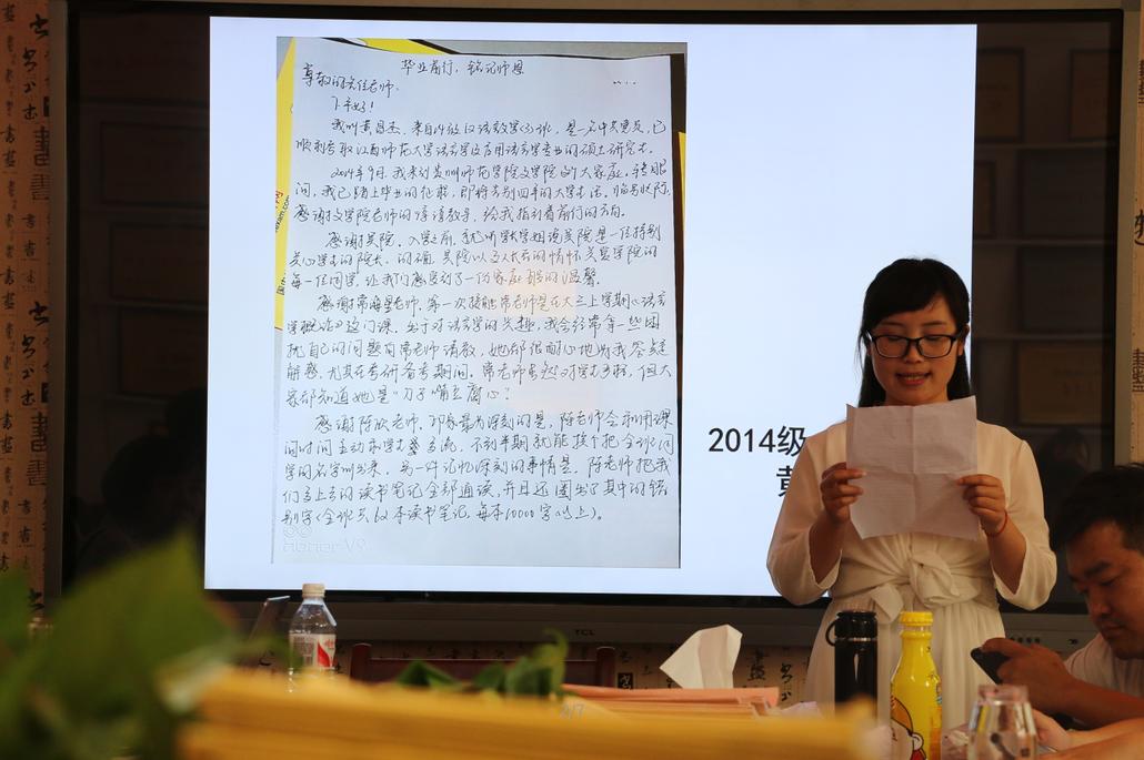 随后,2014级毕业班的龙英柳、李兴慧、钟粤妮、董金鸣、余红菊、陈秀珍等六位同学分别代表汉语言专业、汉语国际教育、广播电视学和广播电视编导专业的毕业生上台发言。几位同学向全体教工党员汇报了自己在大学四年的学习与生活中的成长与感悟,纷纷表示自己能够取得今天的成绩离不开在座老师们的谆谆教诲和悉心指导,用朴实的话语重温了与老师们的珍贵记忆和温馨时刻。