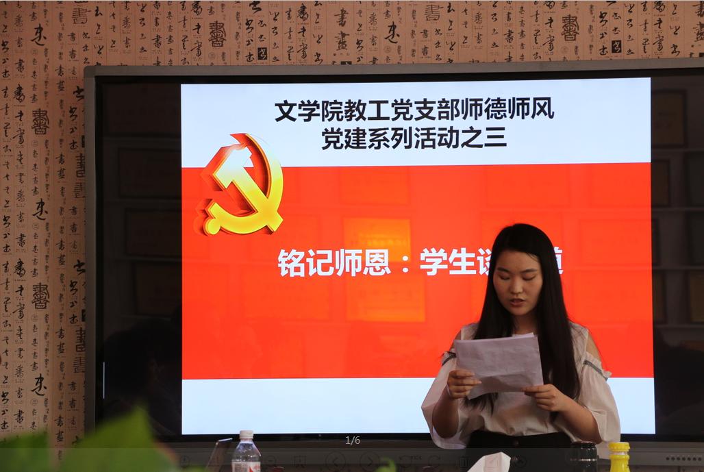 为增进师生情感交流,加强尊师教育,重提师道尊严,5月25日下午,文学院教工党支部在明理楼313会议室开展“铭记师恩:学生谈师道”主题党日活动,这也是文学院教工党支部本学期开展的第三次师德师风党建活动。此次活动由教工党支部书记陈欣主持。