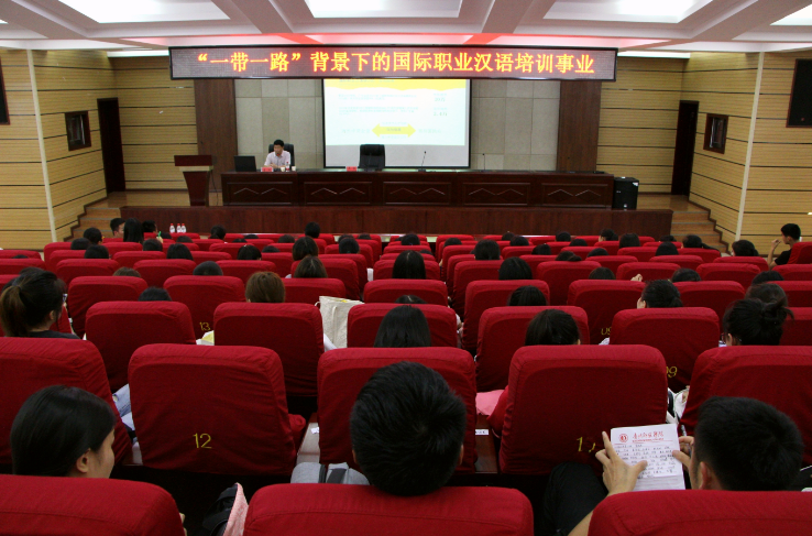 学子对汉语国际化的认知,加快我校华文教育基地的建设,6月21日下午,文学院邀请中山大学博士生导师李炜在文韬院道德讲堂面向2015―2017级汉语国际教育和2016汉语言文学共200余名学生,举行了主题为“‘一带一路’背景下的国际职业汉语培训事业”的讲座。讲座由文学院院长吴俊主持,文学院老教授颜迈莅临现场聆听并点评。