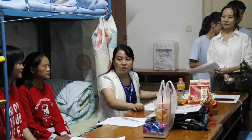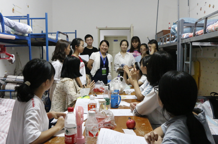 院领导与老师们走进一间间宿舍与新生亲切交谈,为同学们答疑解惑。院领导首先对新生的到来表示热烈的欢迎;其次提醒了同学们要提高自我保护意识和警觉意识,不要轻信以任何身份去宿舍推销商品的人员,以免上当受骗;最后叮嘱新生第二天要参加的活动及注意事项。