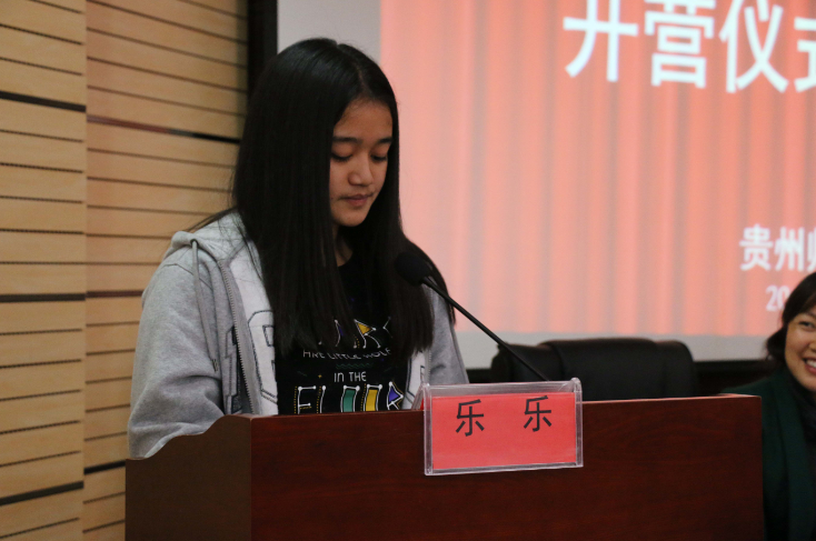 仪式开始,张瑶对远道而来的师生表示热烈欢迎,她给现场的同学们介绍了当前贵州的经济、旅游发展、民族文化等方面,让初入贵州的海外师生对贵州有一个大致的了解。她说,我校已承办了十余次海外华裔青少年中国寻根之旅活动,有着丰富的经验,希望能通过这次的活动,点燃同学们学习汉语、中国文化的热情。