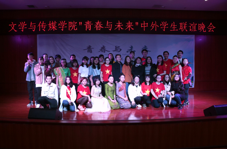 教师张颖慧、王蕴华、徐望、李锦文出席。晚会由汉语国际教育专业学生刘胤男、陈柳伊,越南留学生阮氏明恒、陈黄柏主持。