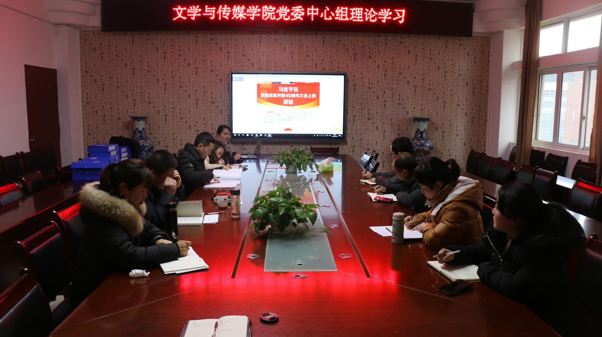 基层党委书记韦丹用“数读”结合图片学习为大家解读习近平在“庆祝改革开放40周年大会上的讲话”。刘海涛副院长解读了习近平在“中共中央政治局民主生活会”上代表的重要讲话。陈亦桥副书记在会上带领大家学习了习近平总书记在“全国教育大会”上重要讲话的精神,是习近平新时代中国特色社会主义思想在教育领域的集中体现。全体成员还在杨波副院长的带领下共同学习《中国共产党纪律处分条例》。