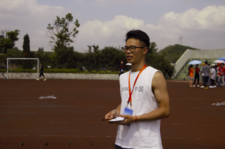 杨晓燕:“作为这次体育节活动的负责人,我内心既忐忑不安又激动万分。接到工作通知之后,我们就出动了所有的学生会成员,一起为体育节工作出谋划策。”