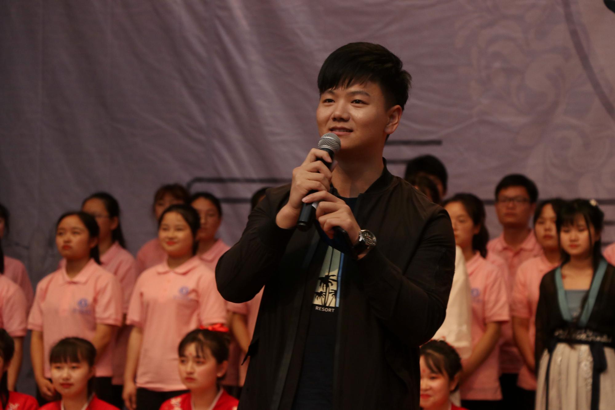晚会接近尾声时,朱昆代表毕业生向学院的老师和同学表达了最真诚的谢意,朱昆用浓浓的情感染着萌动的心;用深深的爱凝望着将逝的流光;用真诚的话祝福着在场的同学们。