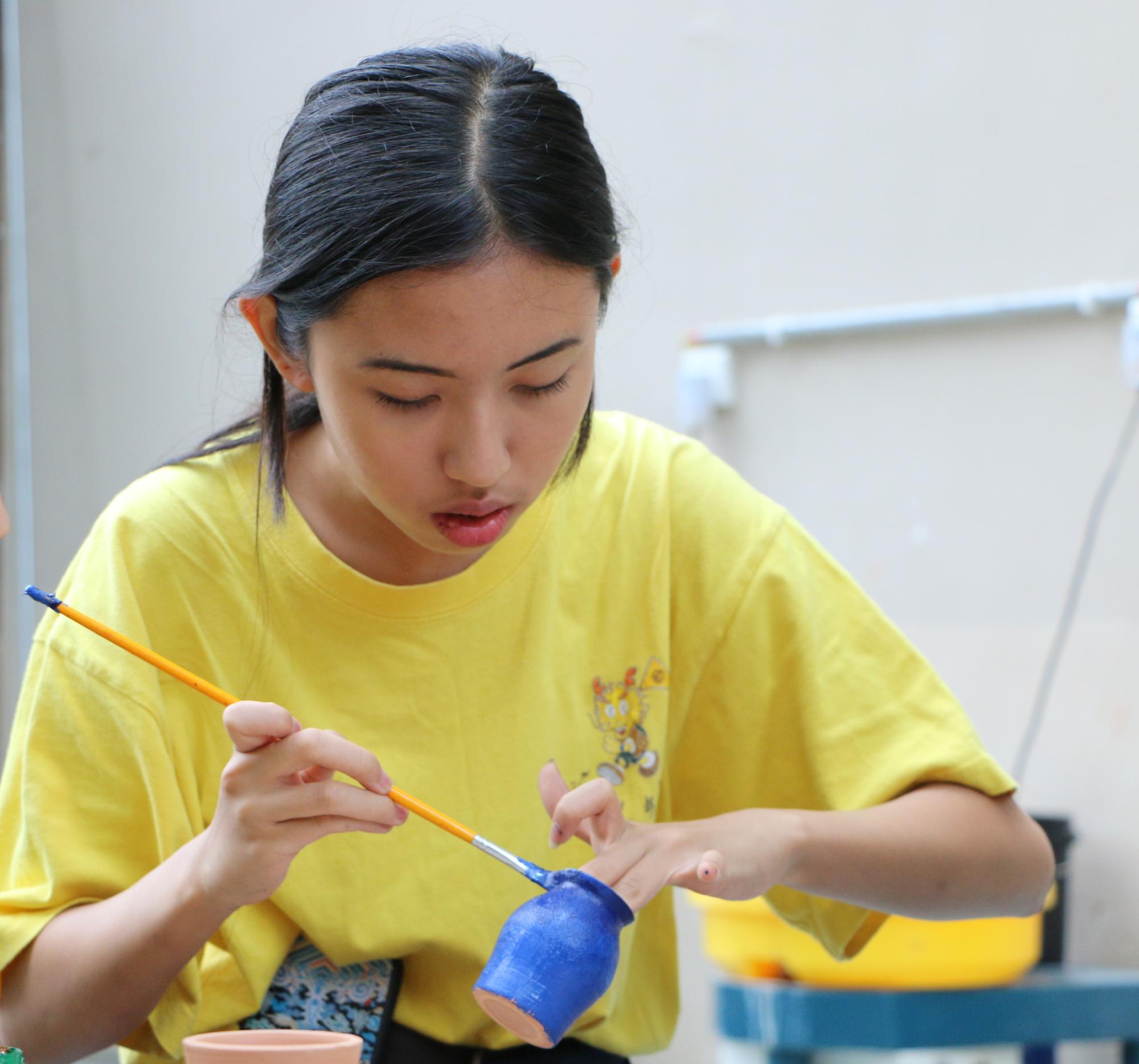 贵州是一个多民族的省份,各民族的文化特点鲜明。在多彩贵州文创园,营员们体验了传统民间技艺。苗族的蜡染技艺经收录在第一批国家级非物质文化遗产名录。营员们在文创园里体验了这种古老的手艺。学习蜡染的男生特别多,别看他们都是男生,这股认真劲儿十足,手艺并不输女生。剪纸也是我国传统的民间艺术。一群男孩子手持剪刀,对着事先准备的图纸,一阵狂剪;但到细微之处,就考验了这群小营员的耐心。来自法国的何雷鸥全程聚神会神,认真雕剪,仔细修磨,精修细剪,终于完成了他的作品。画官窑的同学也不甘示弱,都将自己最好的画功展现出来。经过一天的学习,营员们对贵州的传统民间技艺有了初步的了解,他们感叹,做一件事不难,难的是做好一件事。