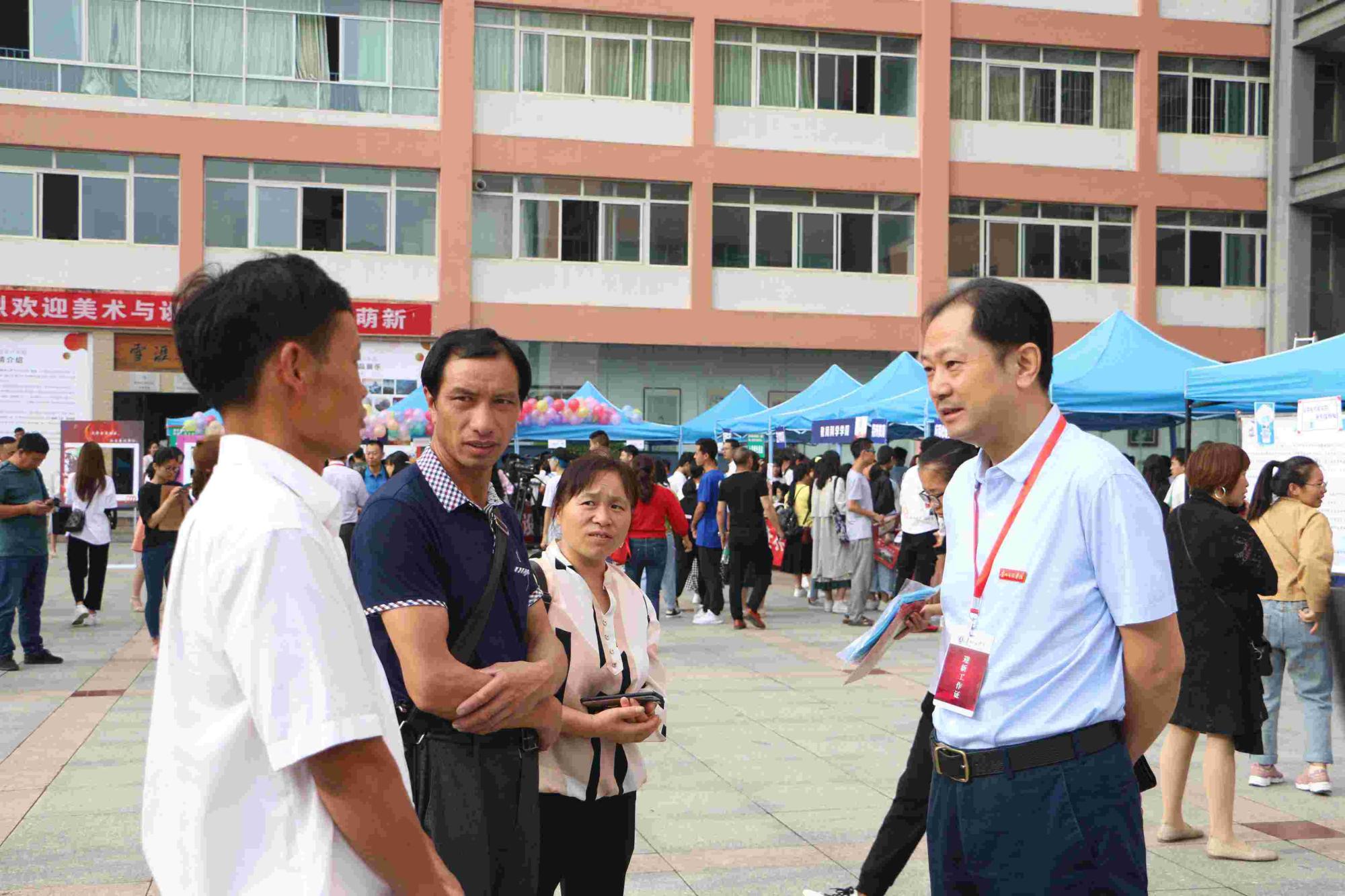 党委书记石培新等校领导来到迎新服务点视察工作,并与2019级新生以及学生家长亲切交流,从不同角度了解了新生的情况。