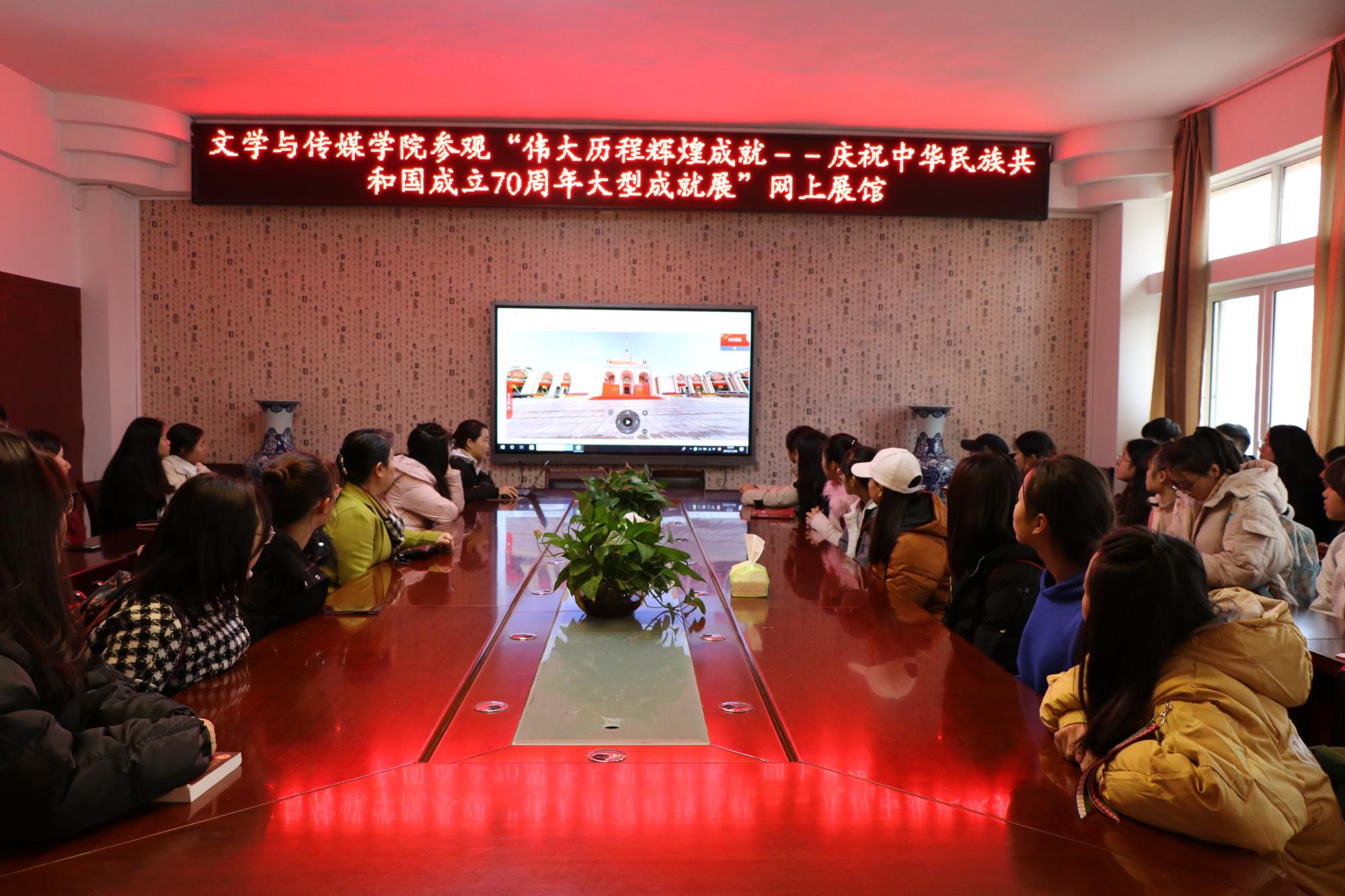 组织部分党员、预备党员、教师、学生到学院会议室集中参观了“伟大历程辉煌成就—庆祝中华人民共和国成立70周年大型成就展”网上展馆,院党委书记韦丹出席活动并讲话。