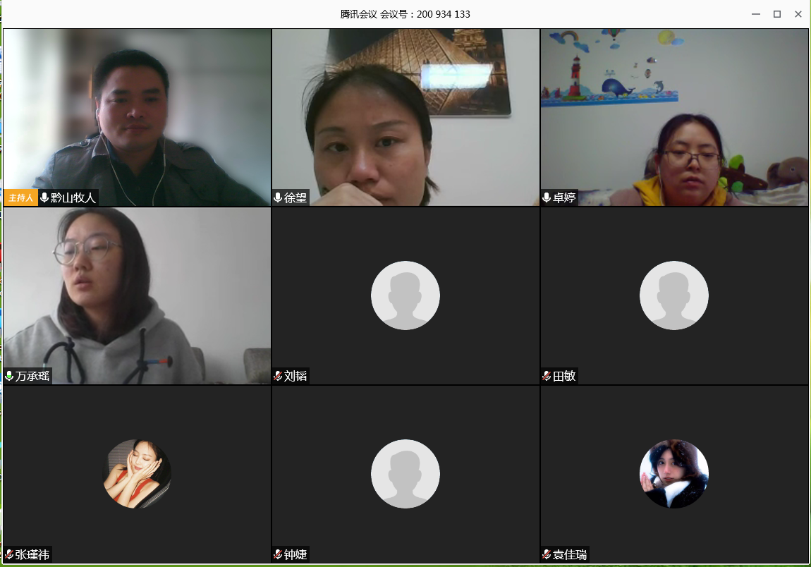 答辩还没有正式开始,答辩老师和将要答辩的同学均已到位,线上会议井然有序。答辩老师们趁着答辩会议还没有正式开始安排了相关事宜,要求答辩老师、答辩秘书以及答辩同学在答辩时必须开启视频。同时组织了大三学生参与了本次线上答辩的旁听,但不能影响学姐学长们答辩。也鼓励学生积极应对,坦然面对大学生活的最后一次考核。
