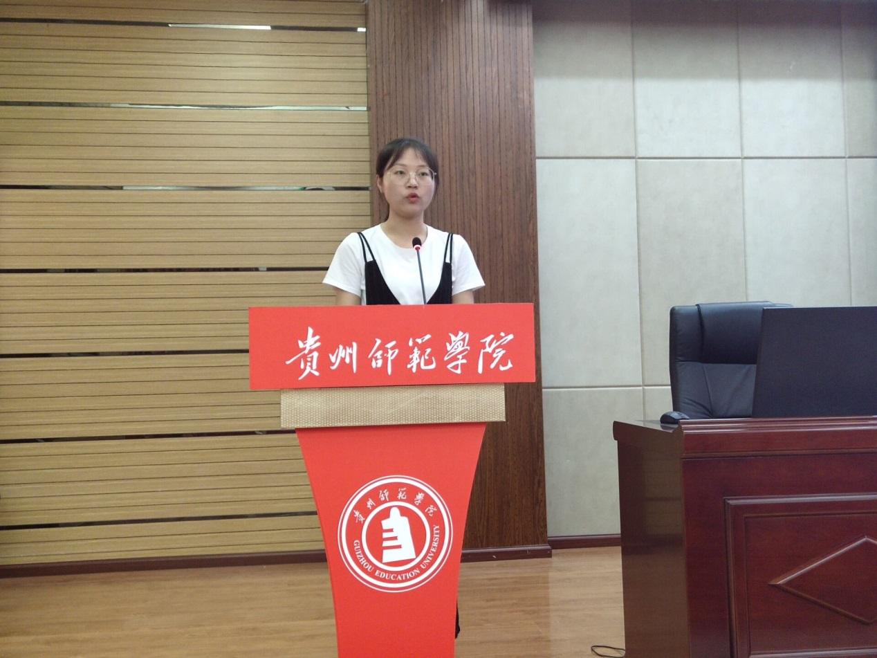实习生代表张仪作了发言,她表示,要尽快转换身份,进入到老师的角色中,并且在实习中要做到理论与实践相结合,要发扬吃苦耐劳的精神,顺顺利利完成实习工作。