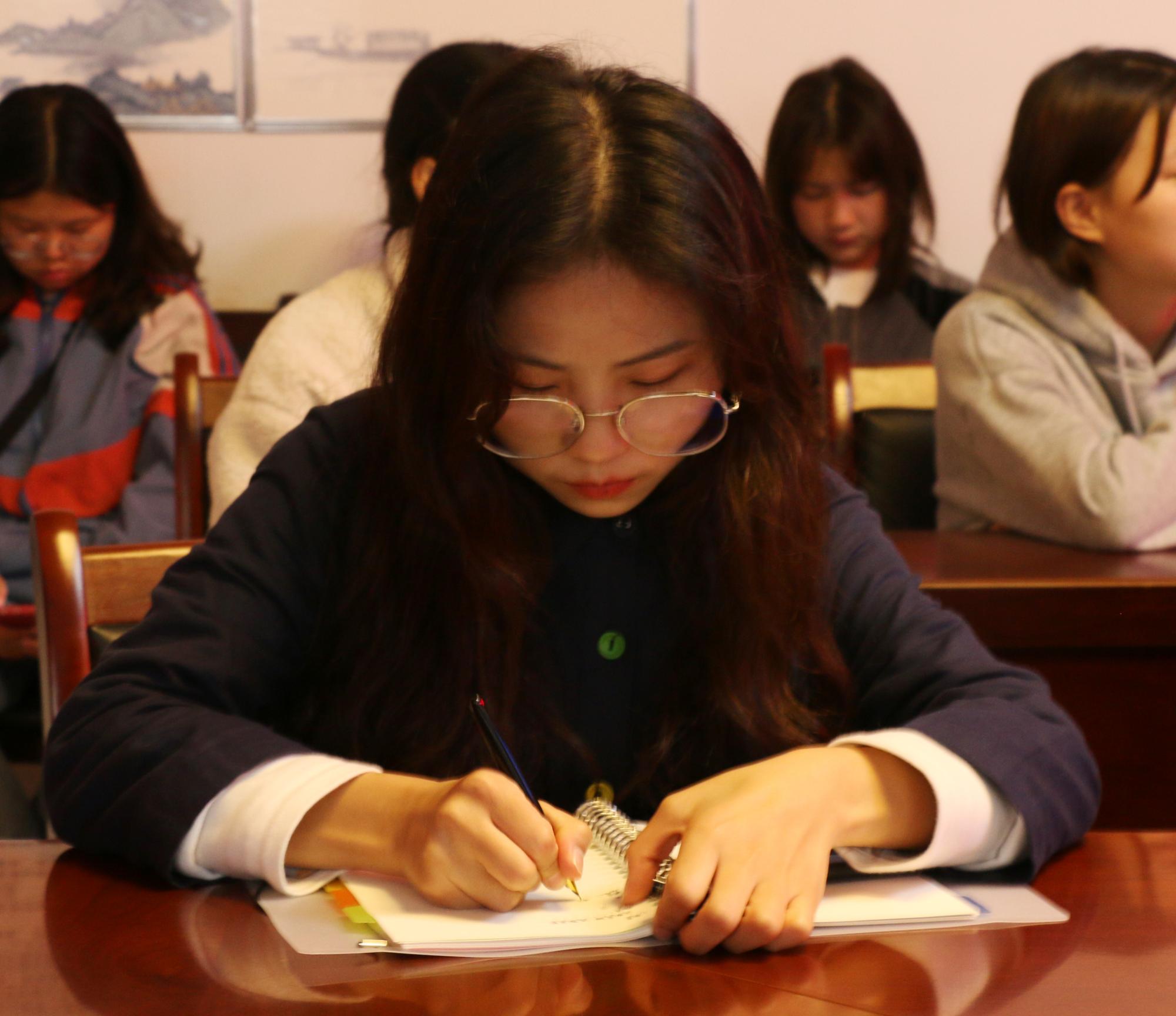 学生认真记笔记