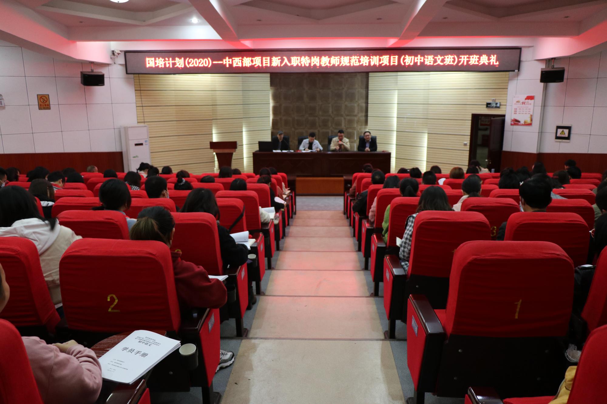 本网讯 10月19日上午,“国培计划(2020)-中西部项目新入职特岗教师规范化培训项目”初中语文班开班典礼在知行苑150报告厅圆满举行。