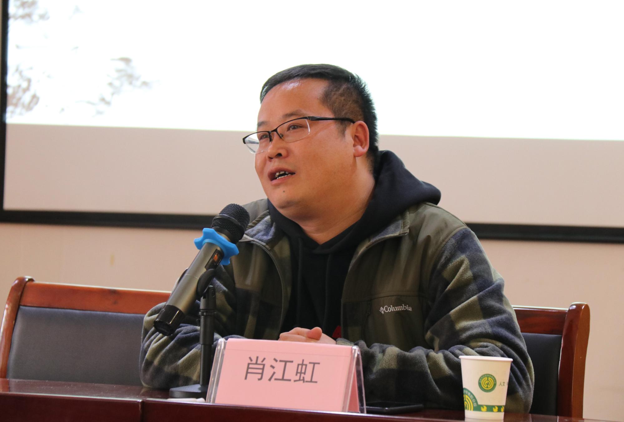 肖江虹首先向大家分享了自己与语文之间的趣味小故事,并讲述自己与语文之间的不解之缘。小学语文老师为他埋下了文学的种子,初中语文老师指导他写作文并获奖,使得她对文学的热情更加浓烈。接着他向大家分析中学写作文和写作之间的差别,作家不一定能写好中学作文,容易审题跑偏,言语不当。肖江虹认为中学语文老师的工作不是简简单单的对学生考试的教学,更多的是人文教育工作。现在的学生大多不具备发散性思维,写作模式过于单一、刻板,缺乏真情实感,这是老师们在教学过程中需要注意的问题。一个好的语文老师要教会学生甄别好的文学作品。现在作家想象力受限,题材内容雷同,脱离现实并且缺乏安顿人物的能力。引导学生看好作品、读好作品对写作来讲至关重要。