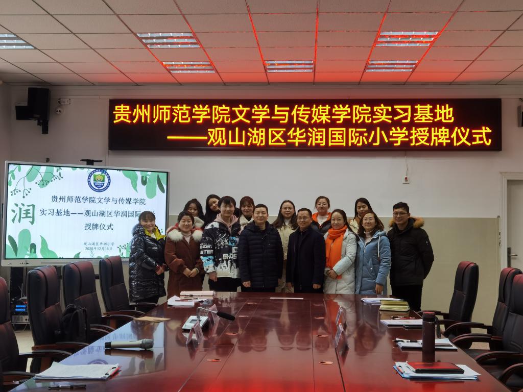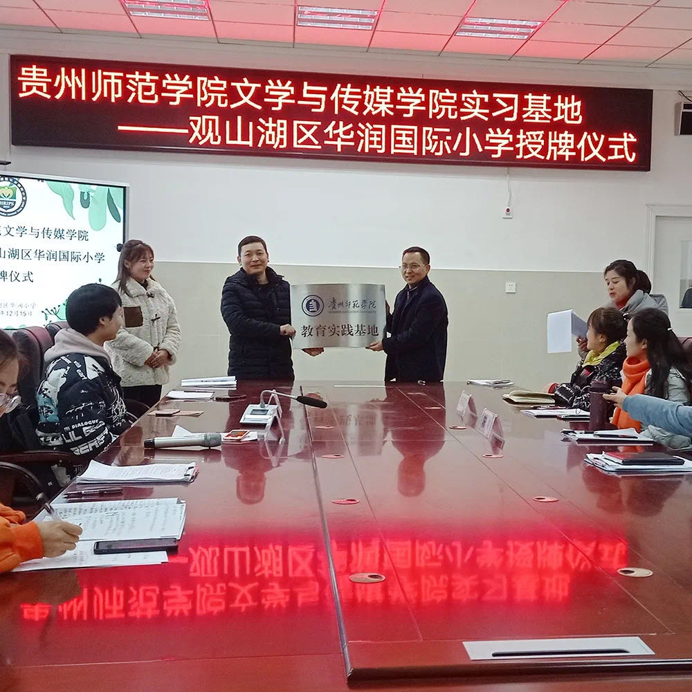 本网讯 12月15日,学院副院长杨波和李锦文老师到观山湖区华润小学听实习生汇报课并举行实习基地授牌仪式,华润小学校长陈冲、校长助理朱双红、四名实习生及其指导教师参加活动。