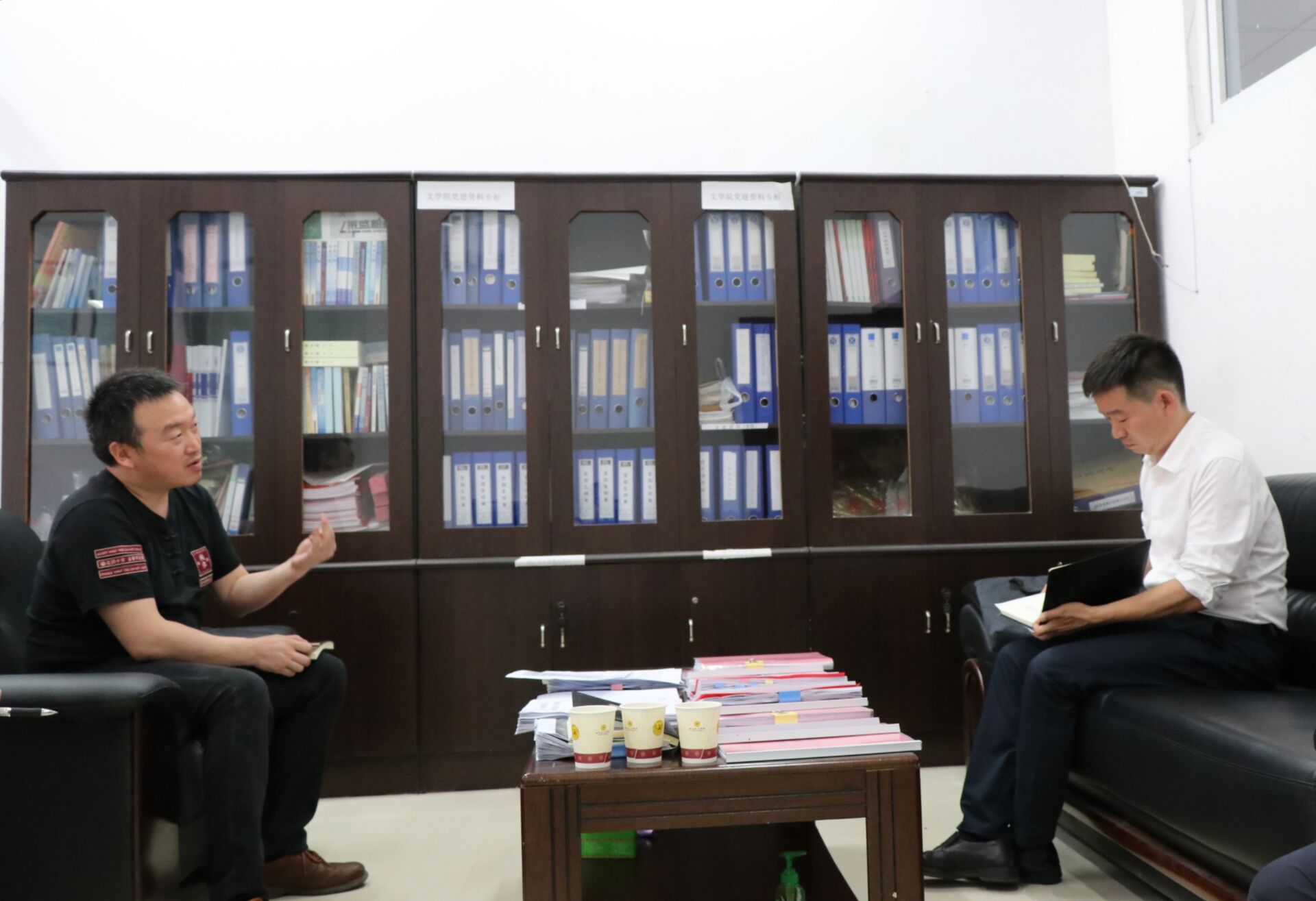 党委书记王军介绍了学院师资队伍、干部队伍及学院党建情况,重点介绍了学院党史学习教育和专题教育活动开展情况。杨昌顺围绕学院党员干部队伍建设、党员发展、党史学习教育和专题教育、辅导员队伍建设、学生思想政治教育等,与学院党政班子成员进行座谈,并提出了建设性的意见和建议。