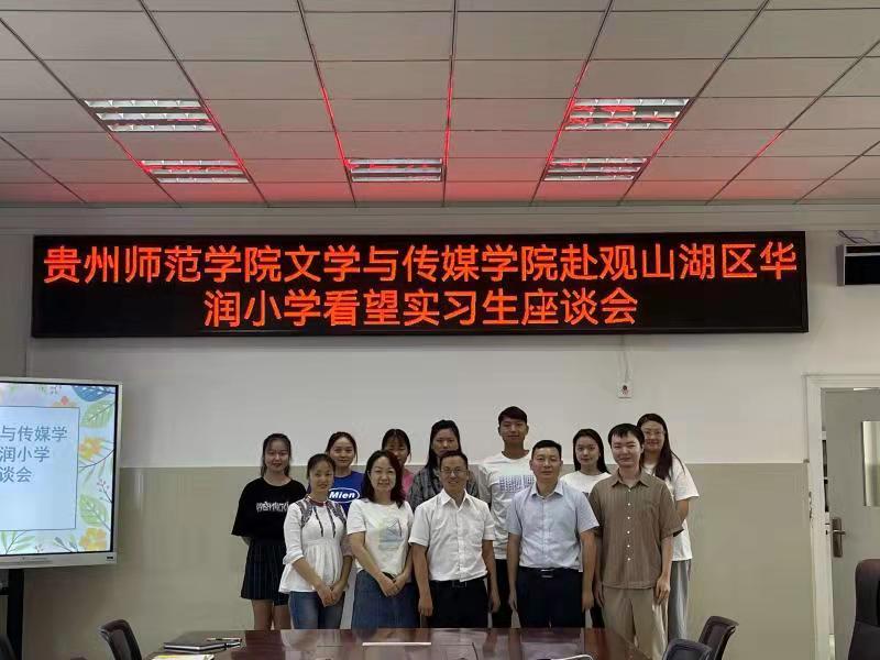 院长杨波、实习生辅导员李锦文老师赴观山湖区华润国际小学看望实习生并组织召开座谈会。华润国际小学校长陈冲、校长助理朱双红、教导处负责人马霞以及7位实习生参会。