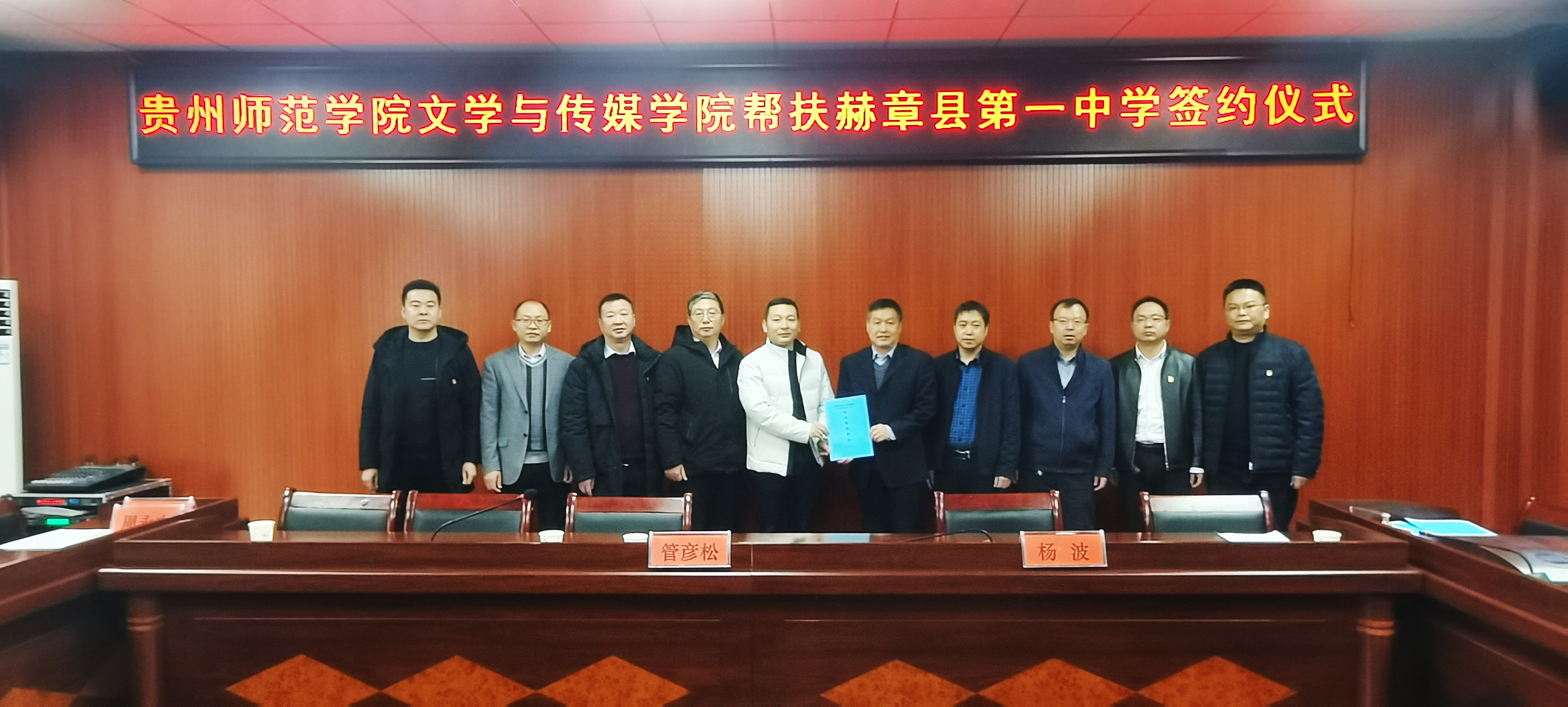 和赫章一中结对帮扶签约挂牌仪式在赫章一中励志楼行政会议室举行。文学与传媒学院院长杨波,教师李明勇、银兴贵,校机关党委书记周永杰,学报编辑部副主任张金富,赫章县教育科技局党组成员、副局长沈儒,省级兼职督学、赫章县教育研究室主任、一中定点帮扶督学王天恩,赫章一中副校长焦义贵、施亮、吉星,赫章一中党总支副书记郭银波等人参加会议。会议由赫章一中党总支书记、校长管彦松主持。