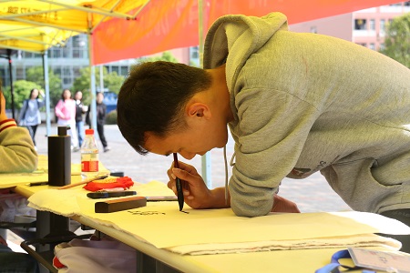 活动会场,陈列了优秀学子的书法作品、摄影合集,以及各类文学书籍,迎来了一大波读书爱好者的青睐。活动过程中,同学们通过回答文学常识题,展现了各自的文学素养;在书法展示区,同学们不仅能够欣赏到许多优秀的书法作品,同时还能在现场与书法爱好者进行切磋,互相交换书法作品。