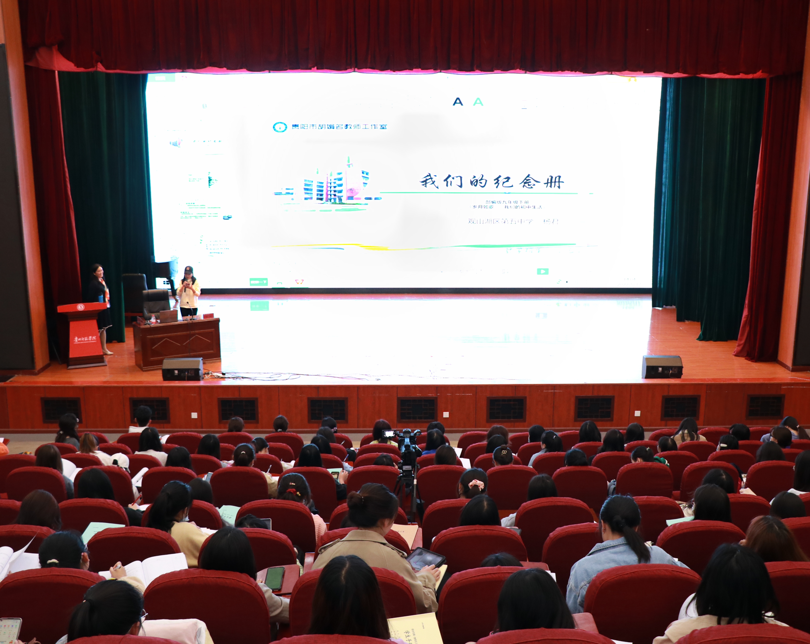 这次讲座先以杨君老师和张怡老师生动的现场演课开场。杨君老师结合初三学生学情,以毕业赠言作为切入点展开综合性学习教学。杨君老师通过三个活动板块来组织课堂,结合学生学情和学生生活,将学生从初一到初三的成长变化娓娓道来,回忆了过往经历,激发学生的兴趣,勾起学生写纪念册的欲望。其次又进一步引导怎么样才能更好地表达自己的情感,最后以一个作业结尾。每个环节环环相扣,综合性学习和写作合二为一,又寓教于乐让人眼前一亮。