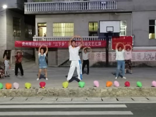 “聚访傩戏之乡,青春益路同行”暑期三下乡社会实践服务队在铜仁市潮砥镇官宅村村委会广场开展“不忘来时路,奋斗正当时”暑期“三下乡”社会实践活动文艺汇演。
