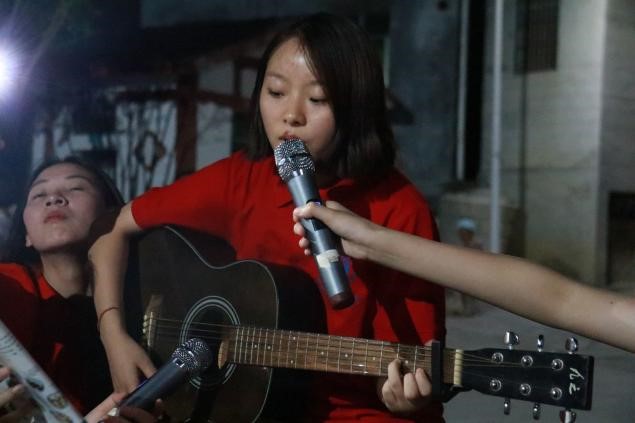 随着主持人慷慨激昂的开场白,文艺汇演正式拉开帷幕。活动现场歌声悠扬、热闹非凡。歌曲《稻香》《我在贵州等你》、吉他弹唱《拥抱》、优美的旋律把现场观众带到充满音符的美好世界;诗朗诵《将进酒》给村民们展示了传统诗词的豪迈;竹笛演奏向村民展示民族乐器的魅力的同时,也深深赞颂了美丽的新乡村和新时代;村民的广场舞和队员与小朋友们的《青苹果乐园》把现场气氛带到了最高潮。