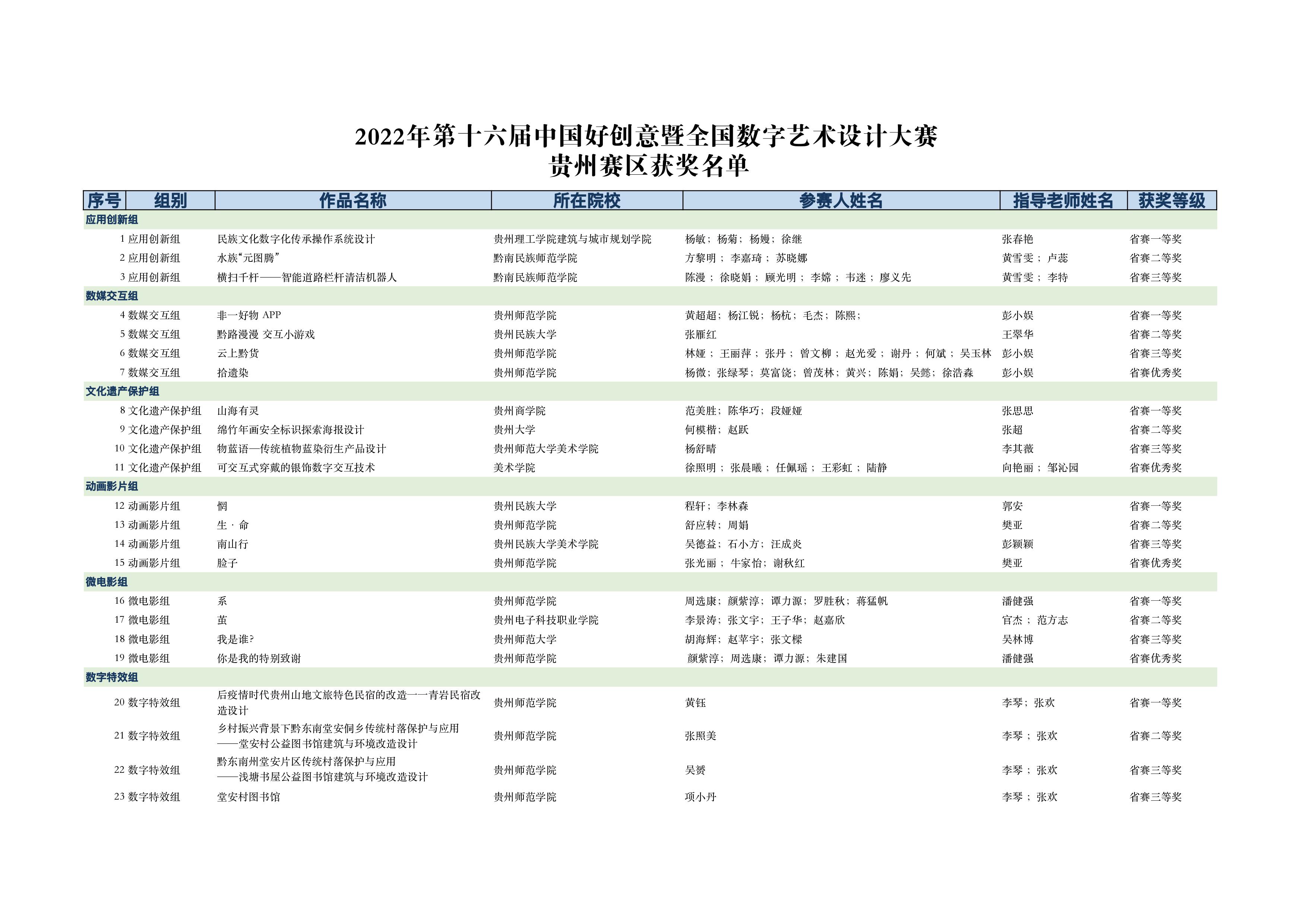 2022年第十六届中国好创意暨全国数字艺术设计大赛贵州赛区评审工作的顺利开展,得到了省内高校相关院系领导、师生的大力支持,同时也加强了省内各兄弟院校之间的交流,对贵州省传媒、艺术设计、影视类专业人才培养起到了积极的促进作用。