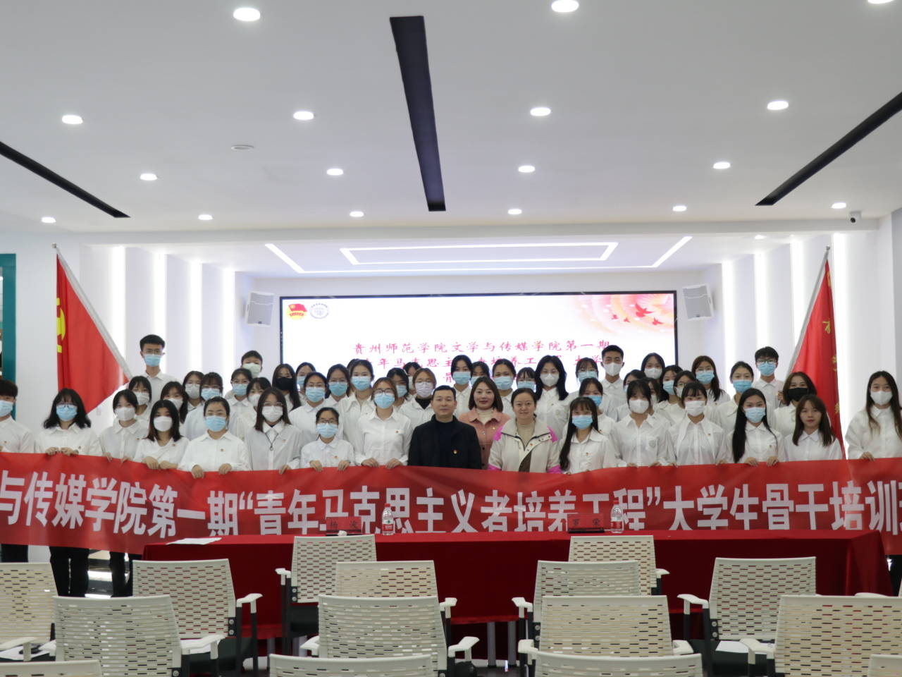 第一期青年马克思主义者培养工程大学生骨干培训开班仪式正式开始。仪式上,蹇登绯宣读本次培训须知,杨波宣读临时团支部委员名单。