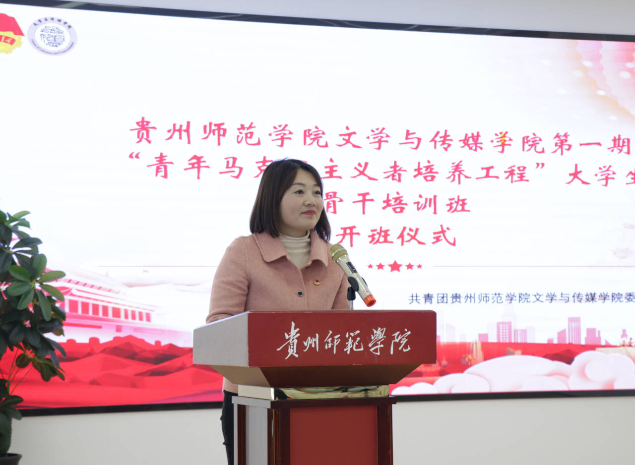 党委深入推进党建带团建,加强共青团思想引领工作取得的成绩给予肯定。她强调,全体学员要深刻认识团中央、教育部深入实施“青年马克思主义者培养工程”的重要意义,明确学院组织开展“青年马克思主义者培养工程大学生骨干培训班”目的,同时对同学们提出三点希望,一是要坚定理想信念,做忠诚于党,政治过硬的青马学员;二是要厚植家国情怀,做志向远大,奋勇争先的青马学员;三是要锤炼品德修为,做能力突出、矢志奉献的青马学员。
