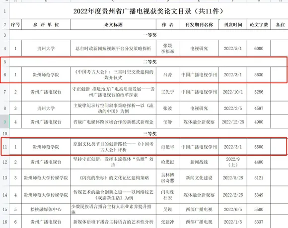 教师吕菁、肖艳华的论文《〈中国考古大会〉:三重时空交叠建构的媒介仪式》和《原创文化类节目的创新路径—〈中国考古大会〉评析》分别荣获二等奖、三等奖。