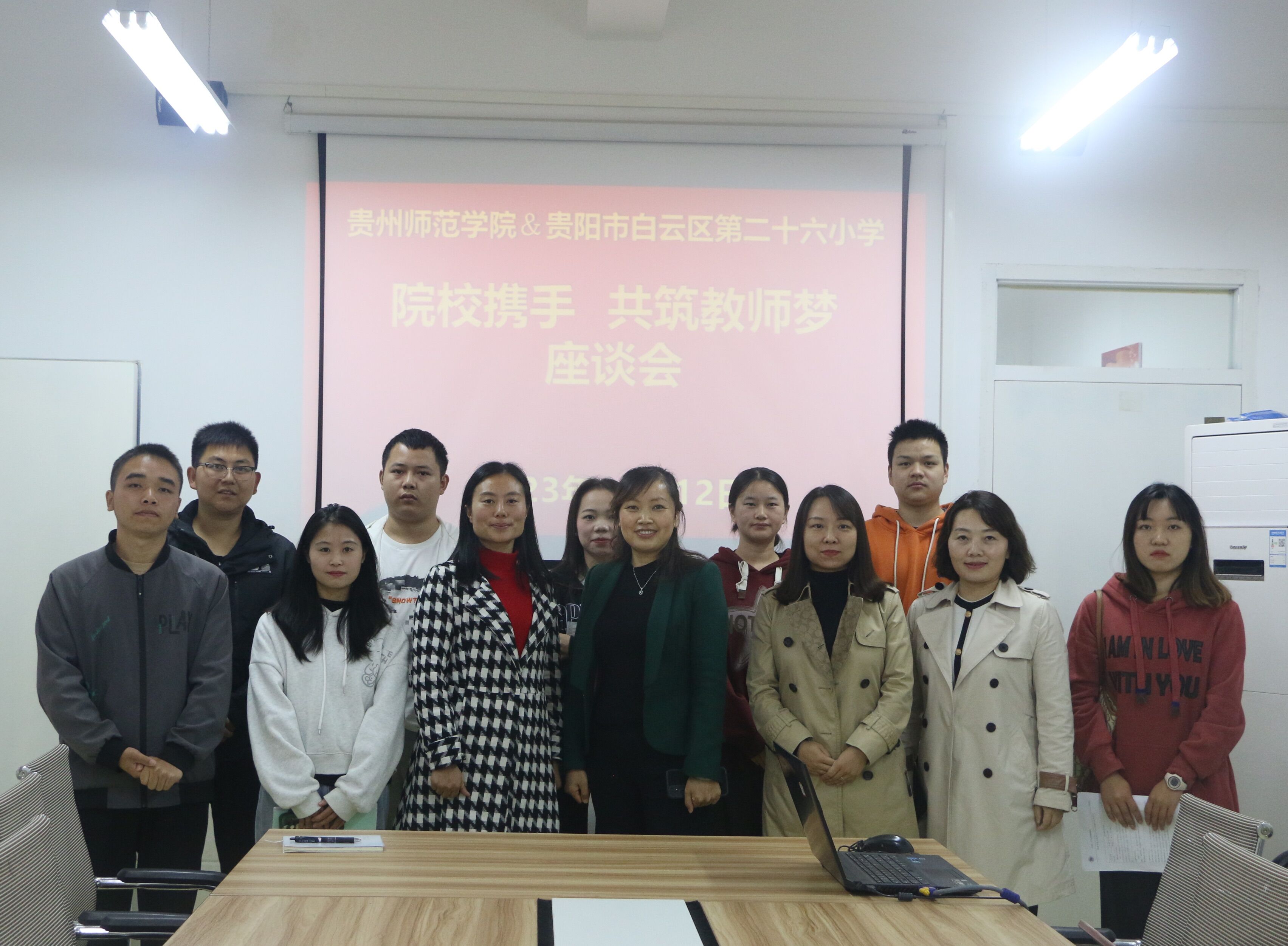 党委副书记陈亦桥、副院长陈欣、团委书记蹇登绯赴贵阳市第二十六小学和北京市日坛中学(贵阳分校)开展2024届师范专业毕业生中期检查工作,白云区第二十六小学小学校长曹俊卿、北京日坛中学(贵阳分校)党委副书记蒋惠、副校长郑丹、实习生指导教师及全体实习生参加座谈。