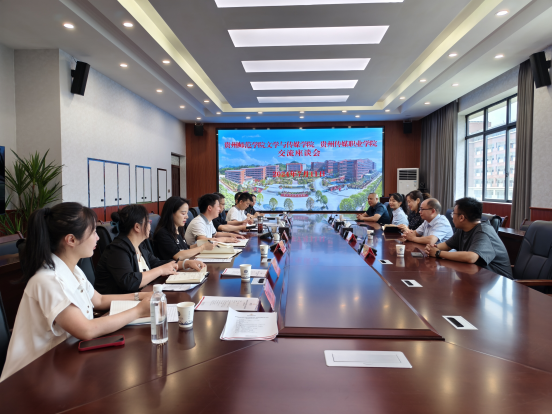 党委副书记陈亦桥,副院长李明勇,广播电视学系主任吕菁,广播电视编导系主任潘健强,实验室主任吴晓洪一行赴贵州传媒职业学院开展考察调研及座谈交流。贵州传媒职业学院党委副书记蒋刘恩,党委委员、党政办主任田旭年,党委委员、学生工作部部长陈亮,招就办副主任林霞,教学管理部部长陶毅,新闻传播系副主任颜婷,视听传媒系副主任兰丹和文化艺术系副主任林琳热情接待并参与了本次交流活动。