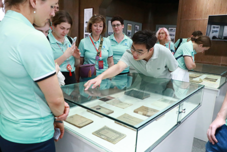 作对外汉语教学情况交流,20名“拉脱维亚汉语和中国文化研修班”学员逐一自我介绍并作交流发言。会前,考察团参观了贵州教育史馆。