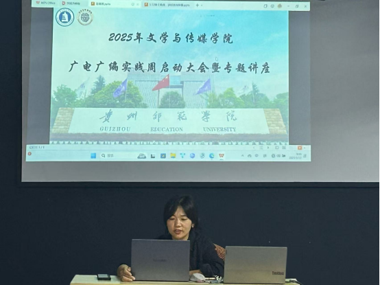 本次实践周特别邀请贵州日报记者李雪雪为师生带来题为《换个角度,讲好贵州故事》的专题讲座。李雪雪老师以其丰富的媒体实践经验和独到的新闻视角,深入浅出地阐释了如何用新颖的角度、多元的表达方式呈现贵州的人文风貌与发展成就。讲座内容充实、案例鲜活,现场气氛热烈,赢得了在场师生的广泛好评。