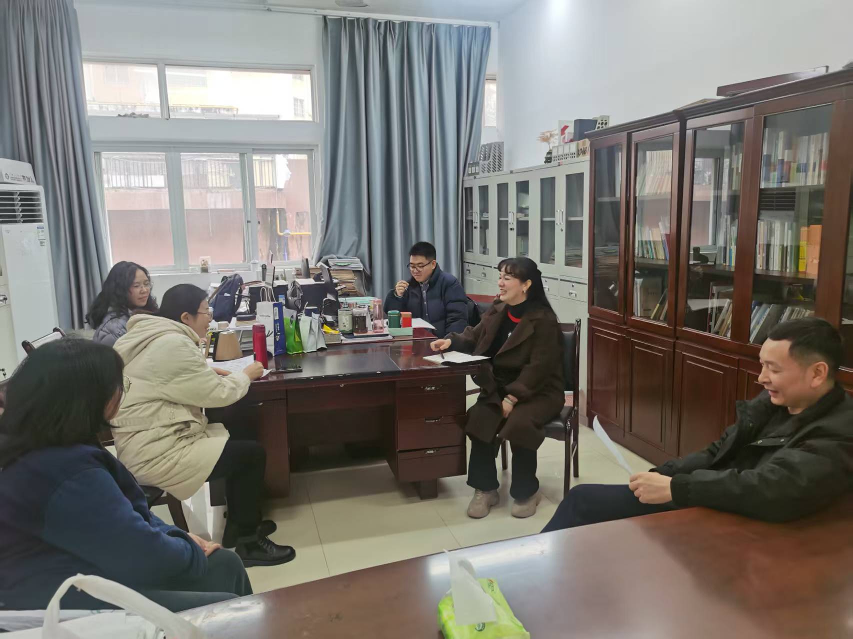 杨波院长、点评专家杨洋老师及银兴贵、卓婷、施院毛、黄昌杰等老师组成研讨小组展开讨论。老师们对本节课的教学创新给予高度肯定,认为课堂环节紧凑、师生互动高效,充分体现了以学生为中心的教学理念;同时就教学细节优化、AI赋能课堂教学创新实践、课程建设等方面进行交流研讨。